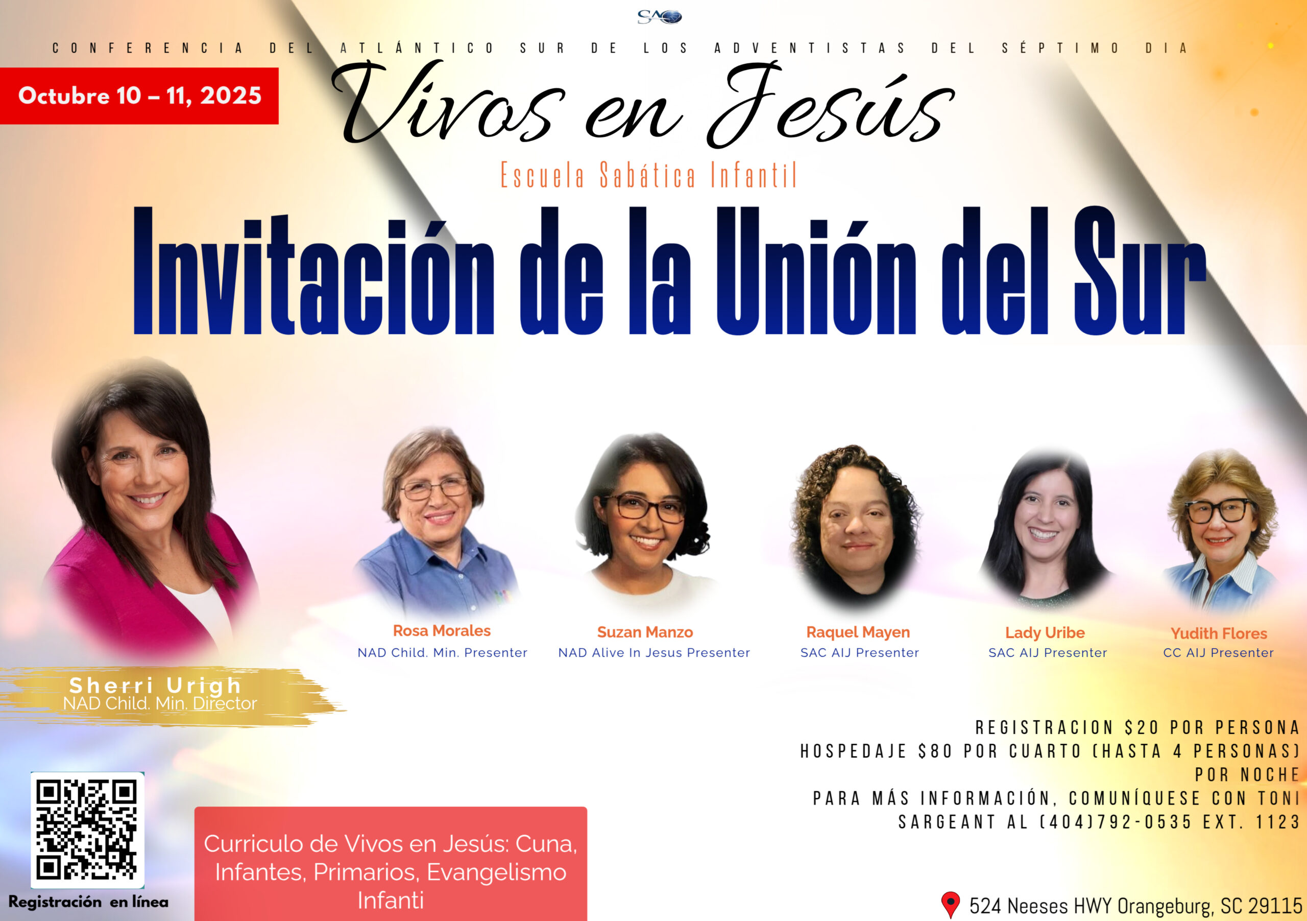 Alive In Jesus Southern Union Invitational (Hispanic) Date Oct 10 - 11 2025 Expired! Time 8:00 AM - 6:00 PM Location River Oaks Camp Ground 524 Neeses Hwy, Orangeburg, SC 29115 Organizer Darryl Howard Share this event
