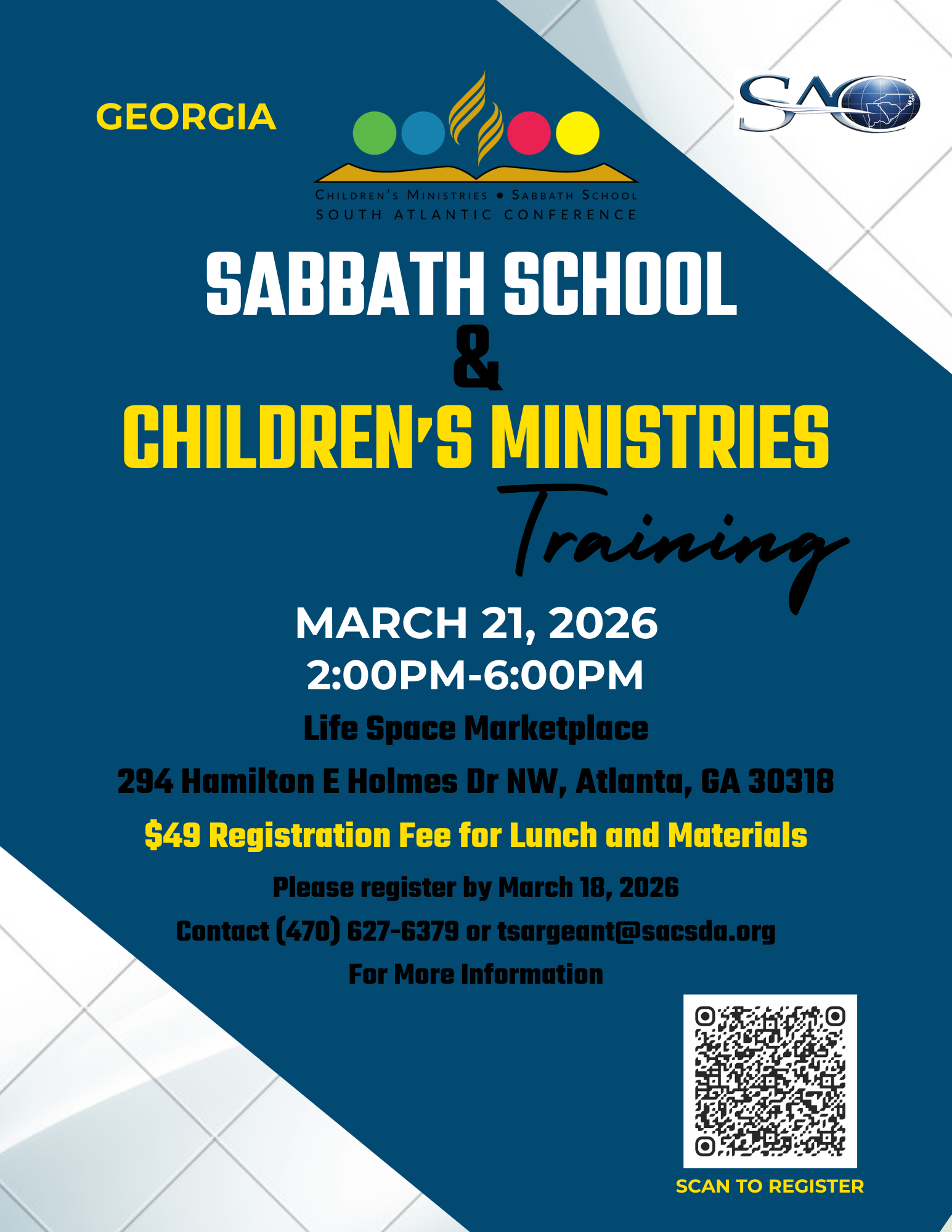 Sabbath School and Children’s Ministries Training Date Mar 21 2026 Expired! Time All Day Share this event